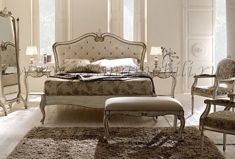 Классическая элегантная кровать из коллекций Silvano Grifoni. Возможны разные варианты отделок и размеров кровати. В коллекции также другие предметы мебели для спальни: тумбы, комоды, банкетки, зеркала, стулья, кресла.