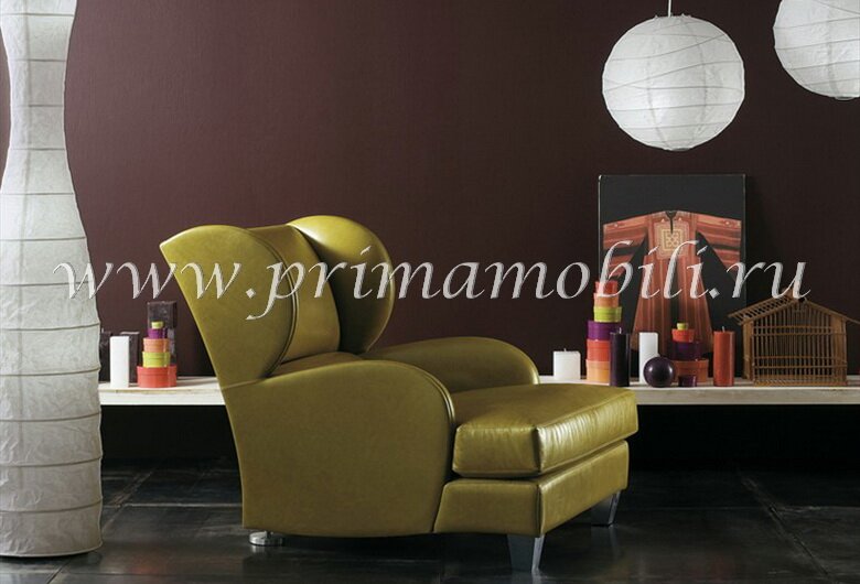 Дизайн Vittorio Prato. Кресло кожаное на деревянных ножках из коллекции Rossella.